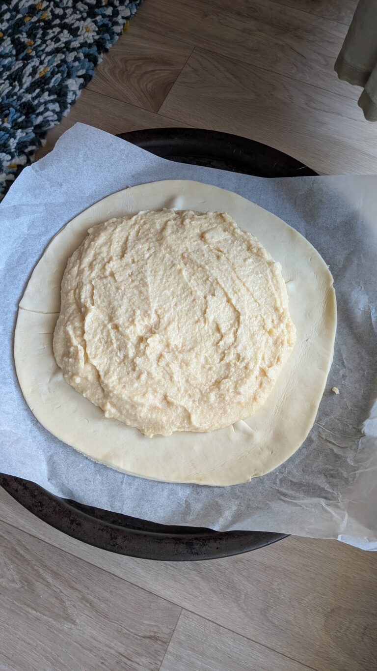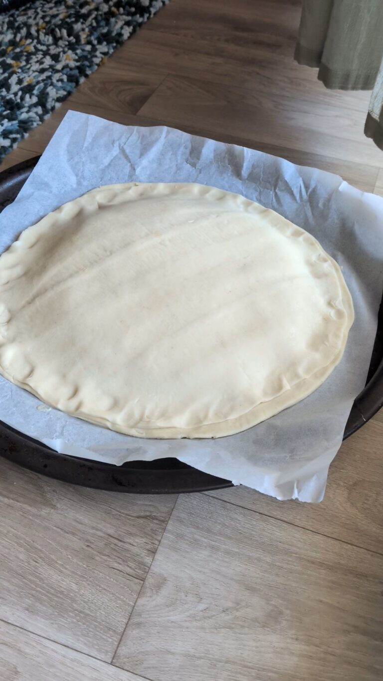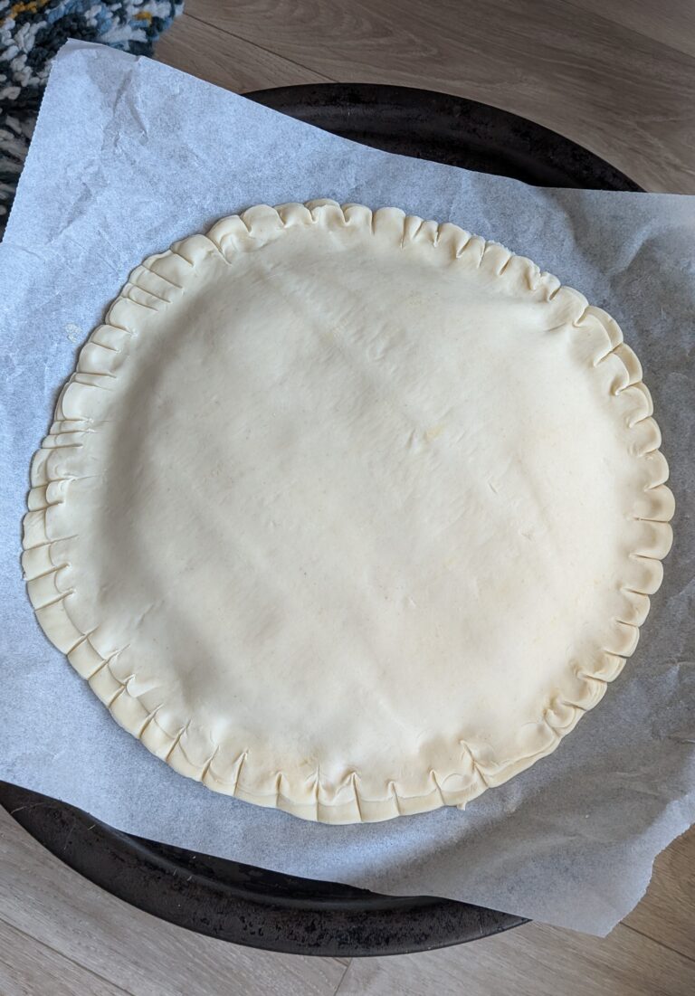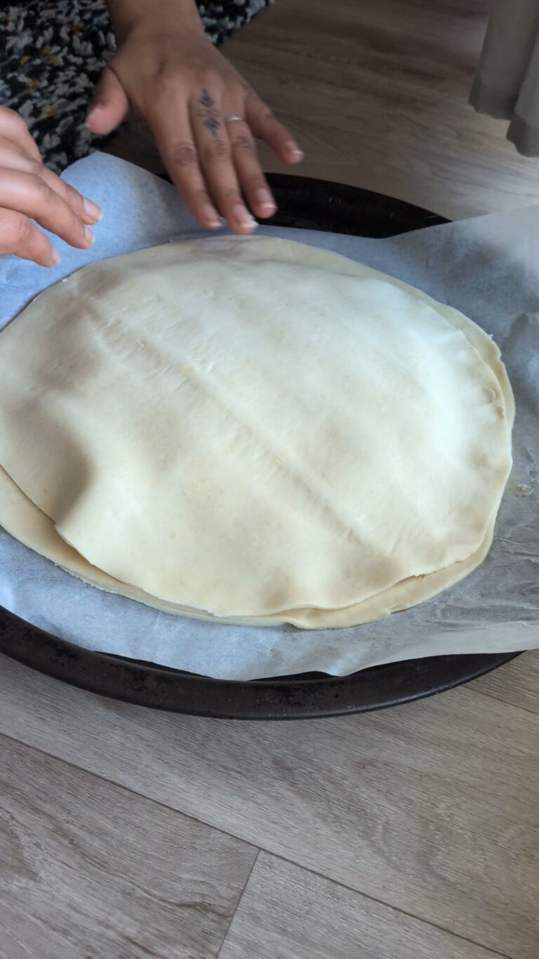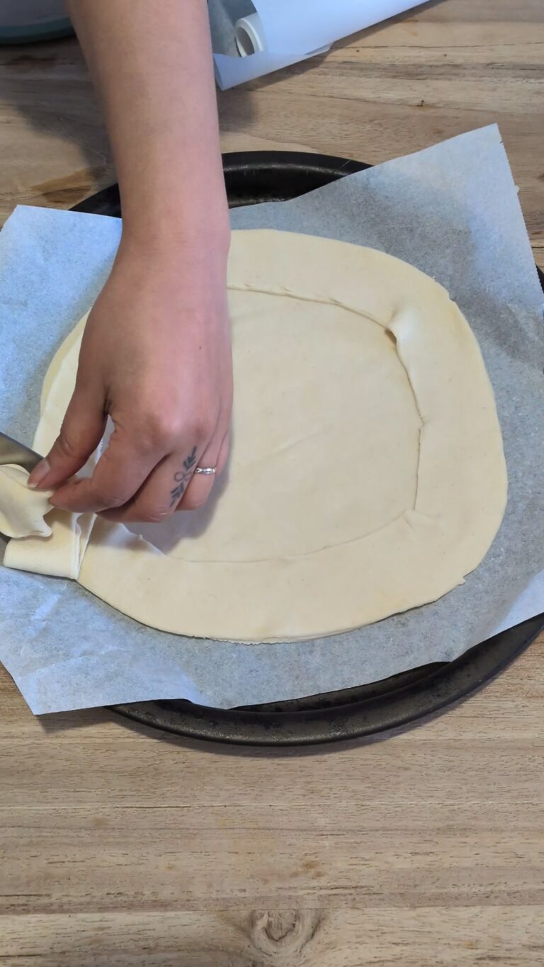 - Optional edge reinforcement: Use a small strip or cut-out from the leftover pastry and press it gently around the edge of the bottom round to create a raised border.