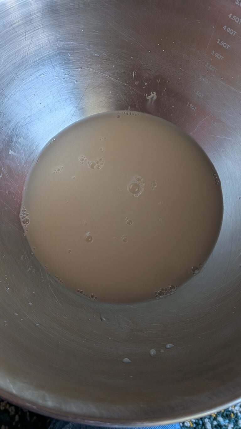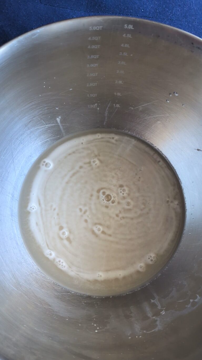 Stir gently. Let it sit for 5–10 minutes, until the surface becomes foamy and bubbly.