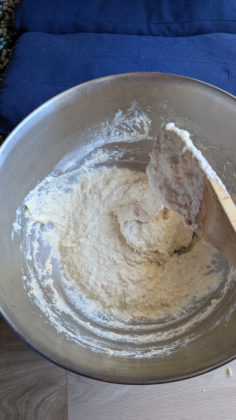 The dough will be wet — that’s perfect for an airy artisan loaf.