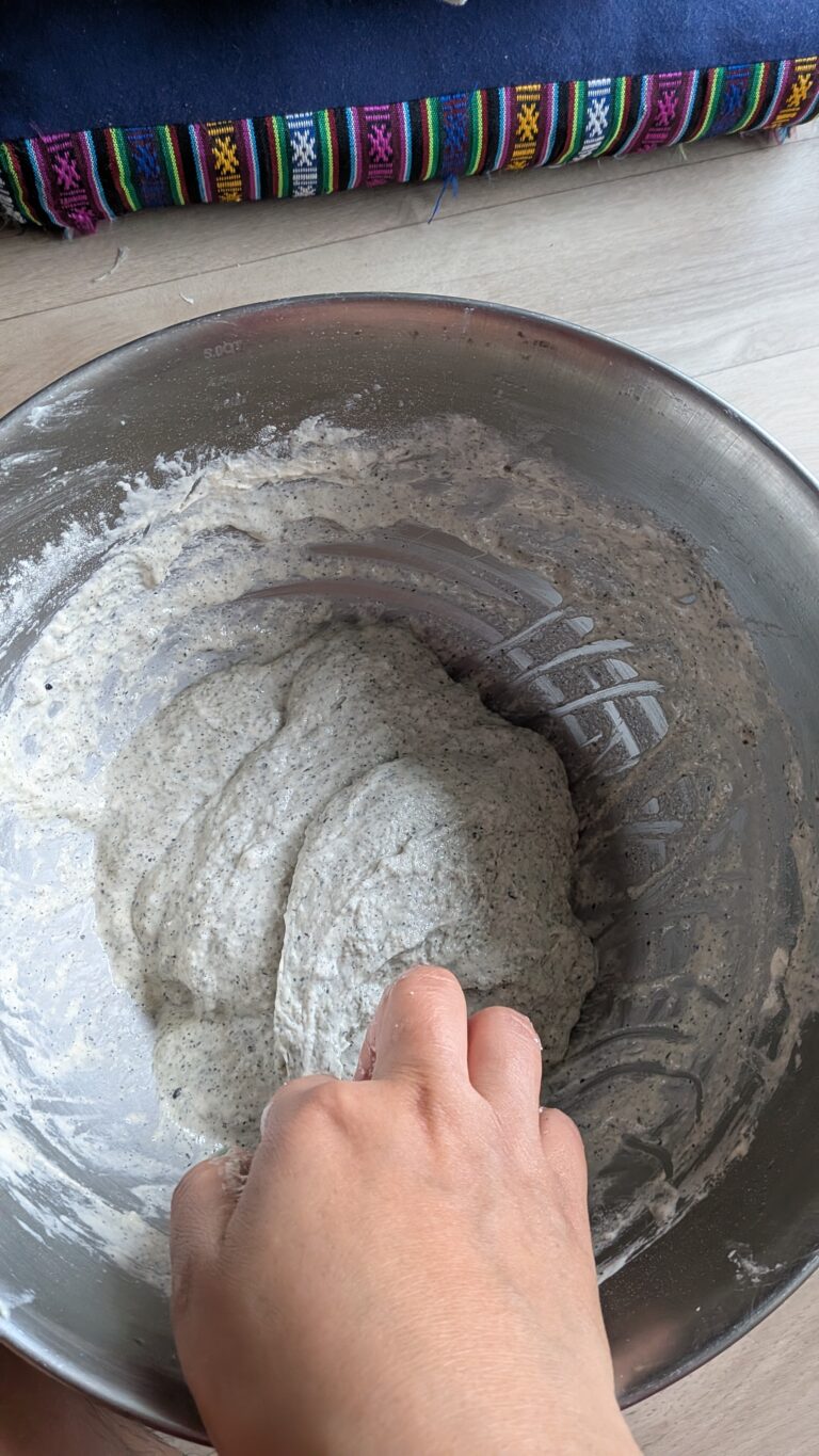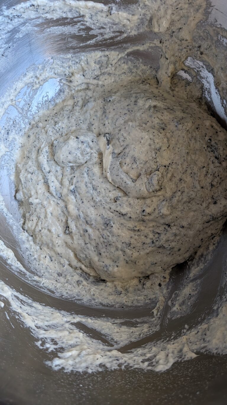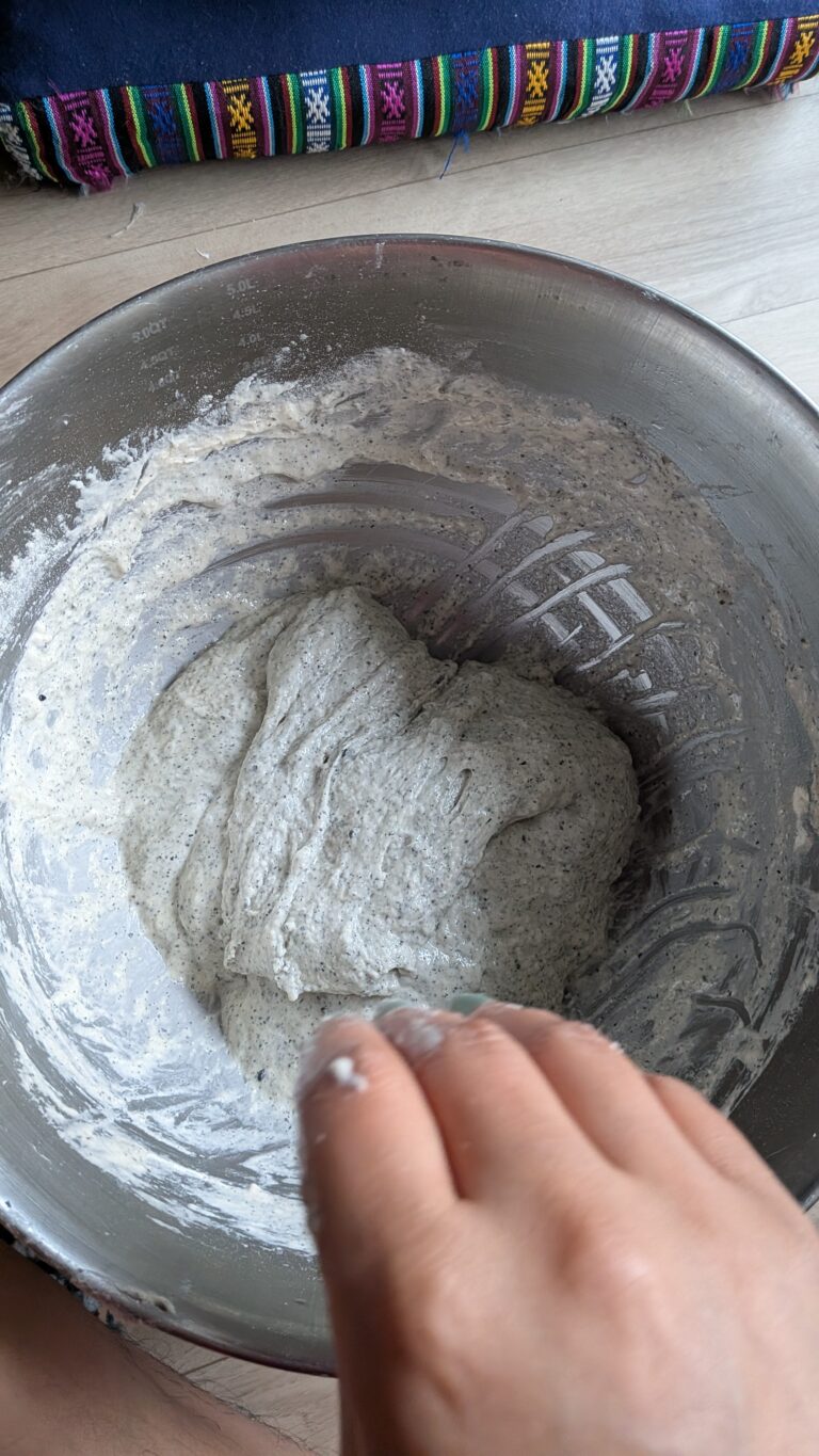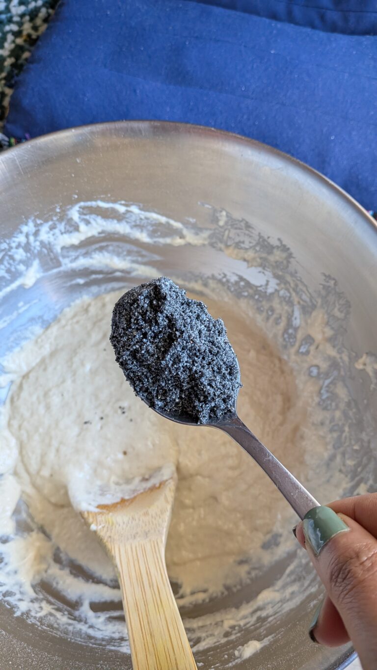 A bread that carried my favorite flavors—nutty, earthy, warm. So I added ground black sesame to the dough, which deepens the aroma and adds a soft, irresistible nuttiness. I folded in walnuts, because I love texture and crunch in bread. And before baking, I sprinkled the top with poppy seeds and roasted brown sesame seeds for that extra layer of fragrance and a toasty, crackling crust.