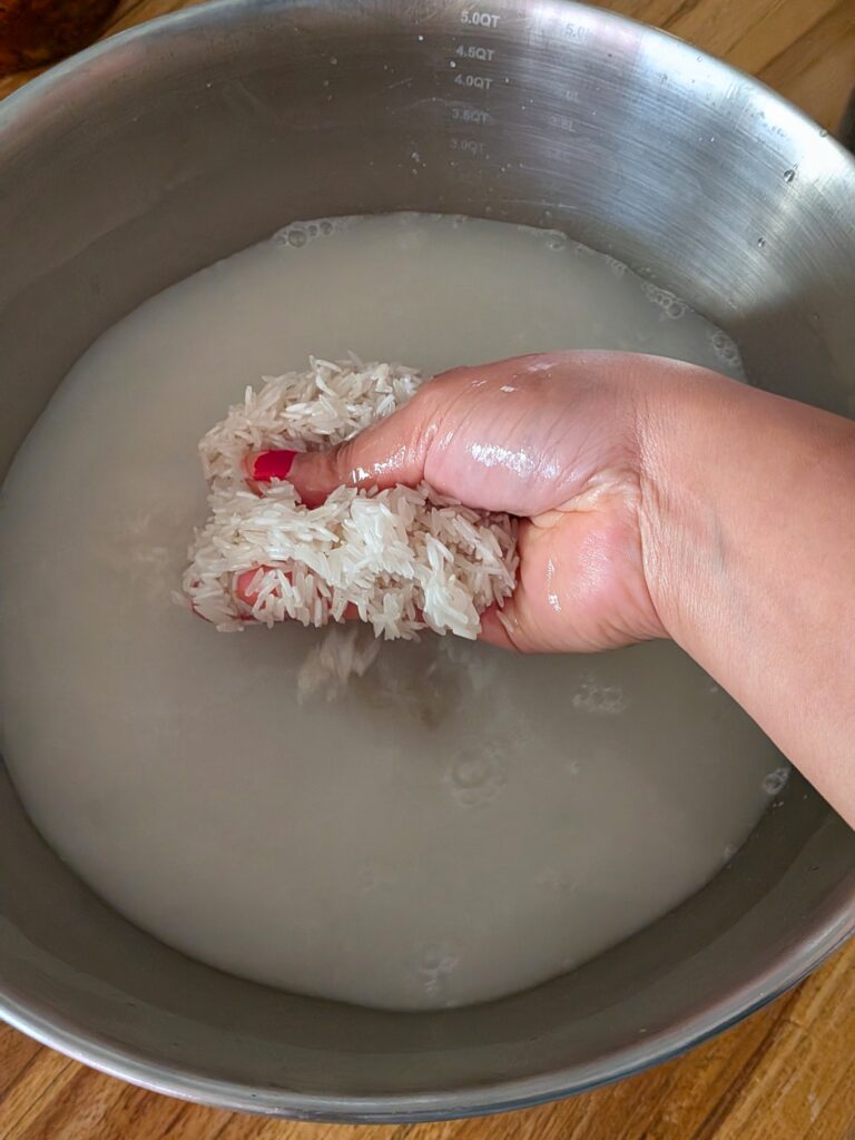 • 2 cups of rice (soaked overnight)