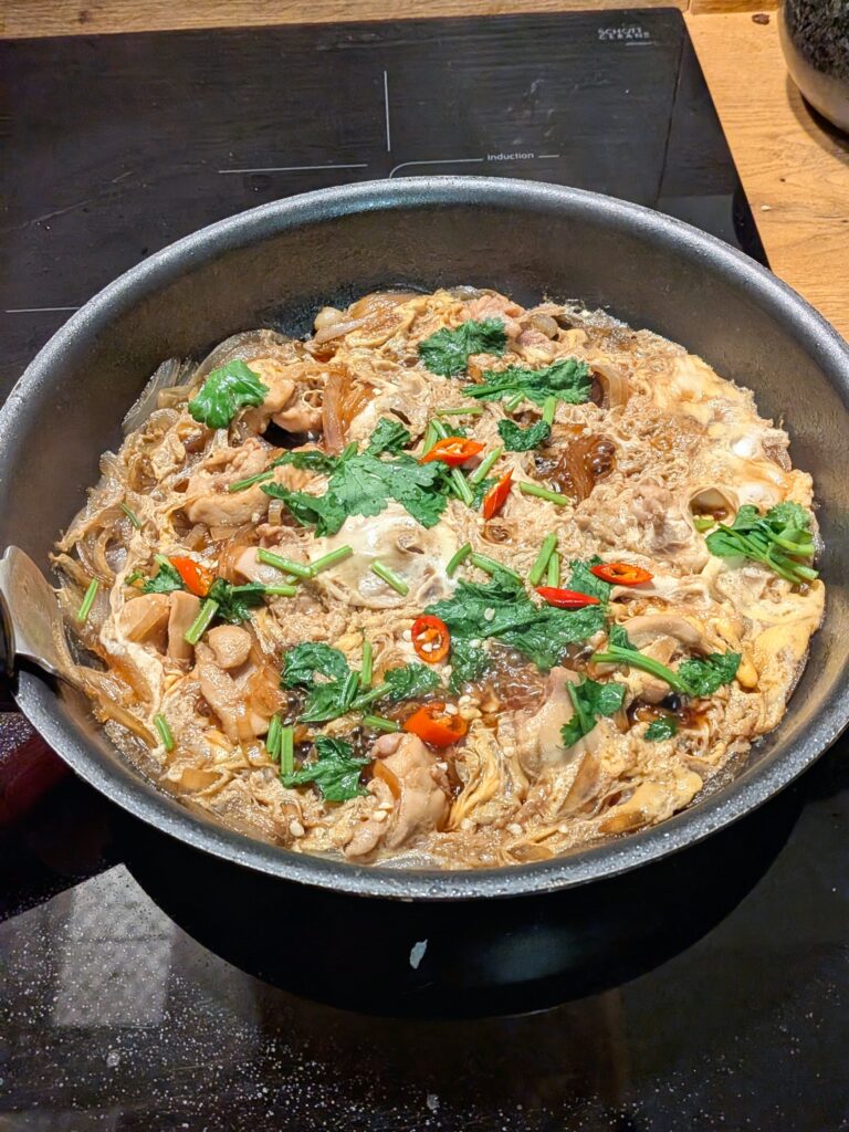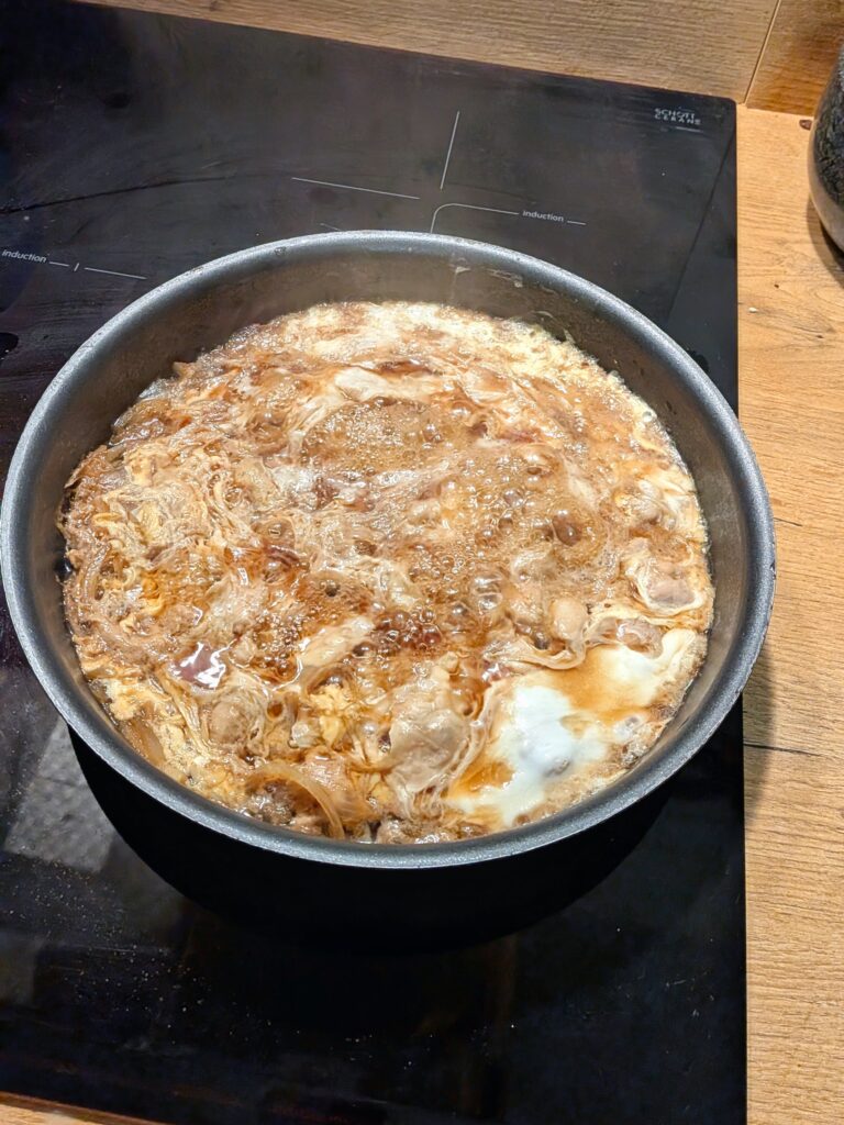 The word oyakodon (親子丼) literally translates as “parent-and-child rice bowl.” The name is poetic: chicken (the parent) and egg (the child) come together in one dish, simmered in a savory-sweet broth and served over rice.